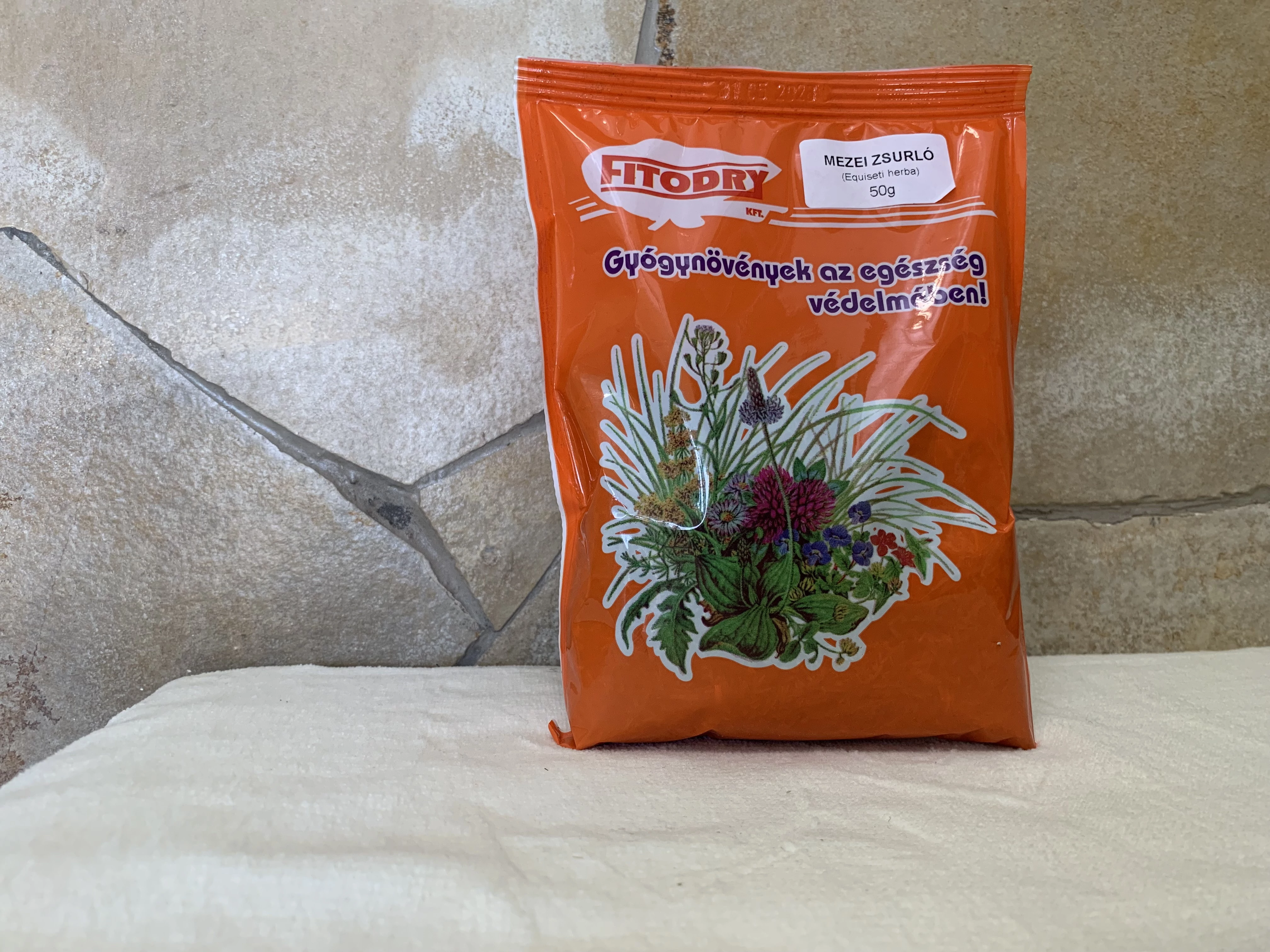 - • Szárított mezei zsurló gyógynövény, amely hagyományosan alkalmazott növényi alapanyag teák készítéséhez