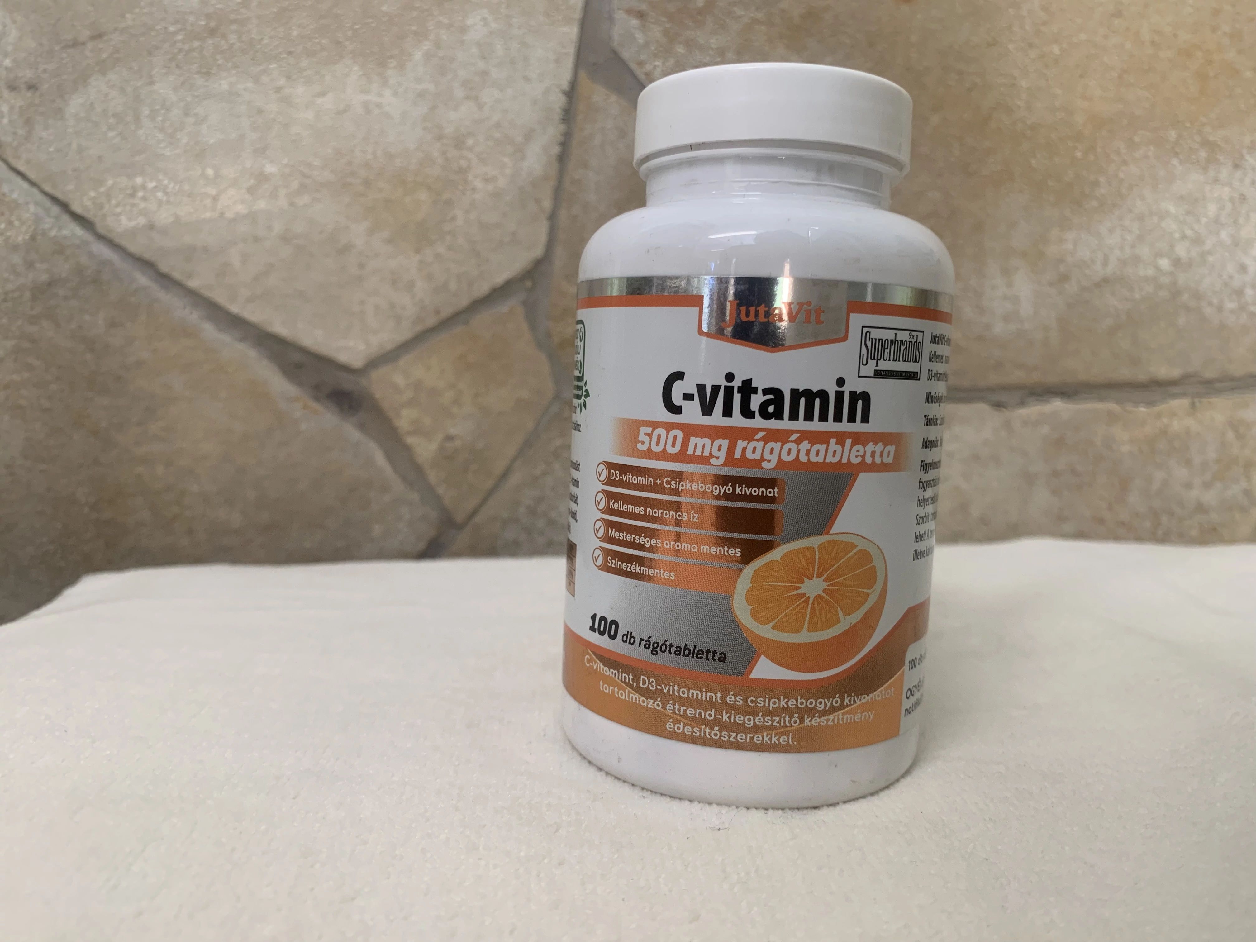Összetevők: édesítőszerek (szorbit, szukralóz), nátrium-L-szkorbát, L-aszkorbinsav, csomósodást gátló anyagok (zsírsavak magnéziumsói, szilícium dioxid), csipkebogyó kivonat, Quali®D D3-vitamin készítmény (módosított kukoricakeményítő, cukor, antioxidáns [nátrium-L-aszkorbát, alfa-tokoferol], közepes szénláncú zsírsavak trigliceridjei, csomósodást gátló anyag [szilícium-dioxid], kolekalciferol), aroma (narancs [természetes]), tömegnövelő szer (hidroxi-propil-metil-cellulóz), színezék (kurkuma kivonat [természetes]).